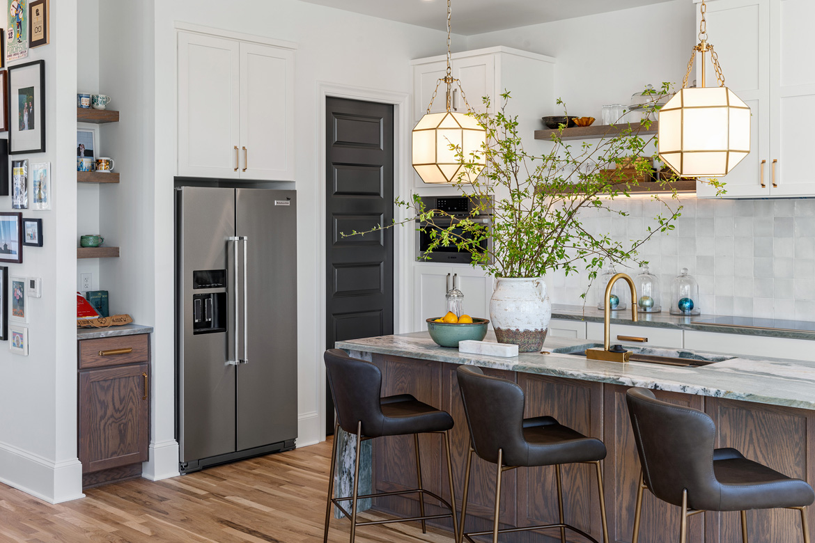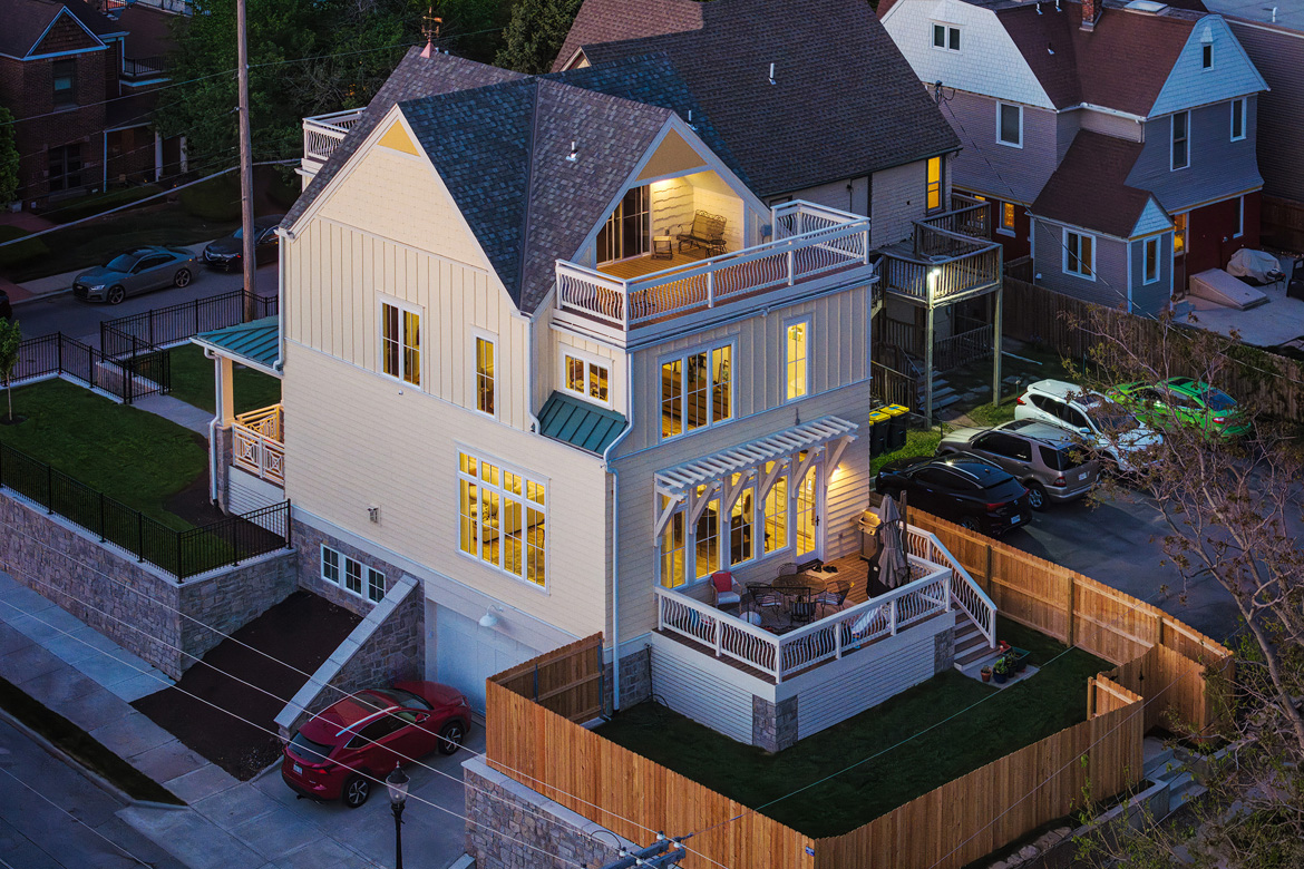 A hidden gem tucked inside the historic Union Hill neighborhood, The 101 is a three-story row home perched atop this iconic neighborhood. Inspired by a Victorian doll house with modern touches, this gem of a home features large windows, an inviting covered front porch with accent metal roof, and trellis railing. Two rooftop decks flanking the third-floor family room, plus additional back yard deck provide ample outdoor entertainment space and display panoramic views of downtown city skylines. Modern interior detailing and amenities blend old world charm and 21st century convenience to create a timeless space for today’s families. An open concept main floor includes waterfall quartzite countertops, beautiful hardwood floors, and is washed in light with floor-to-ceiling windows. Artisan handcrafting is on display with Harry Potter inspired fireplace mantel and barrel archway that frames our signature Edward Franklin staircase with hardwood treads, custom iron railing, and tiered lighting display that connects all four levels. A wet room shower and custom closet add an added touch of simple luxury to the Primary Bedroom