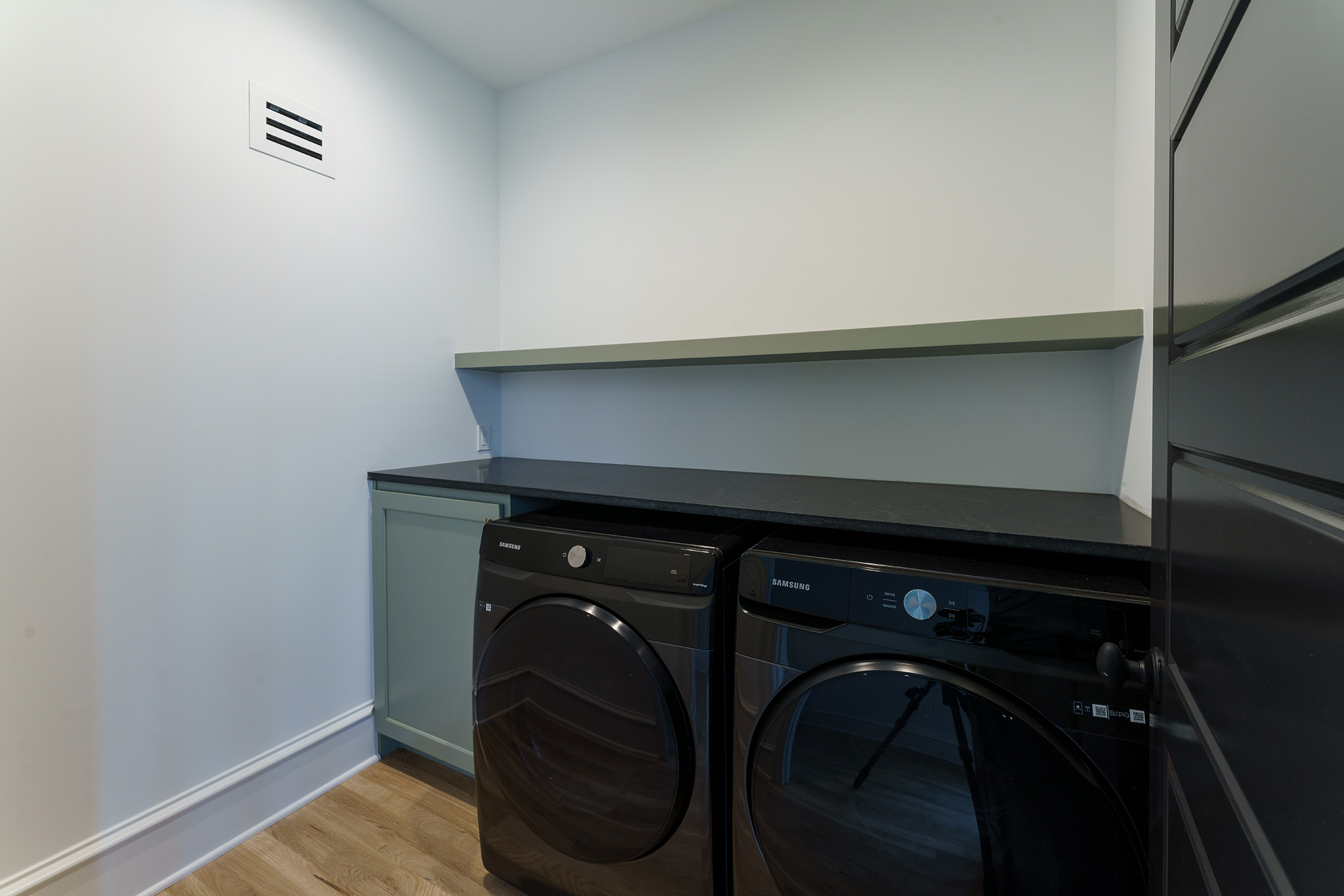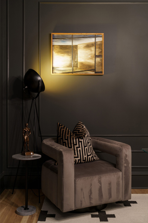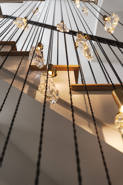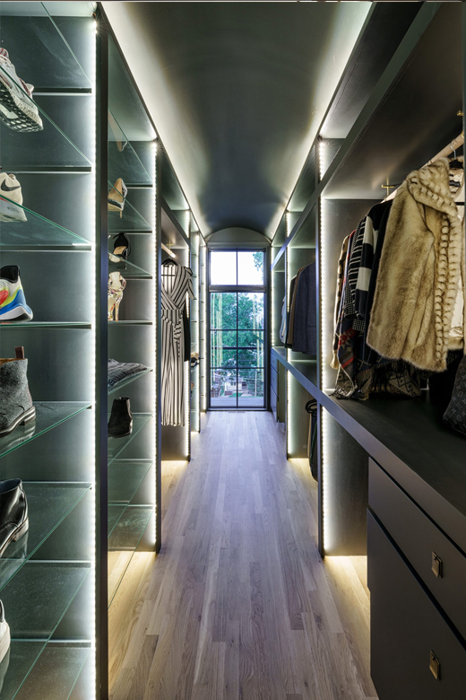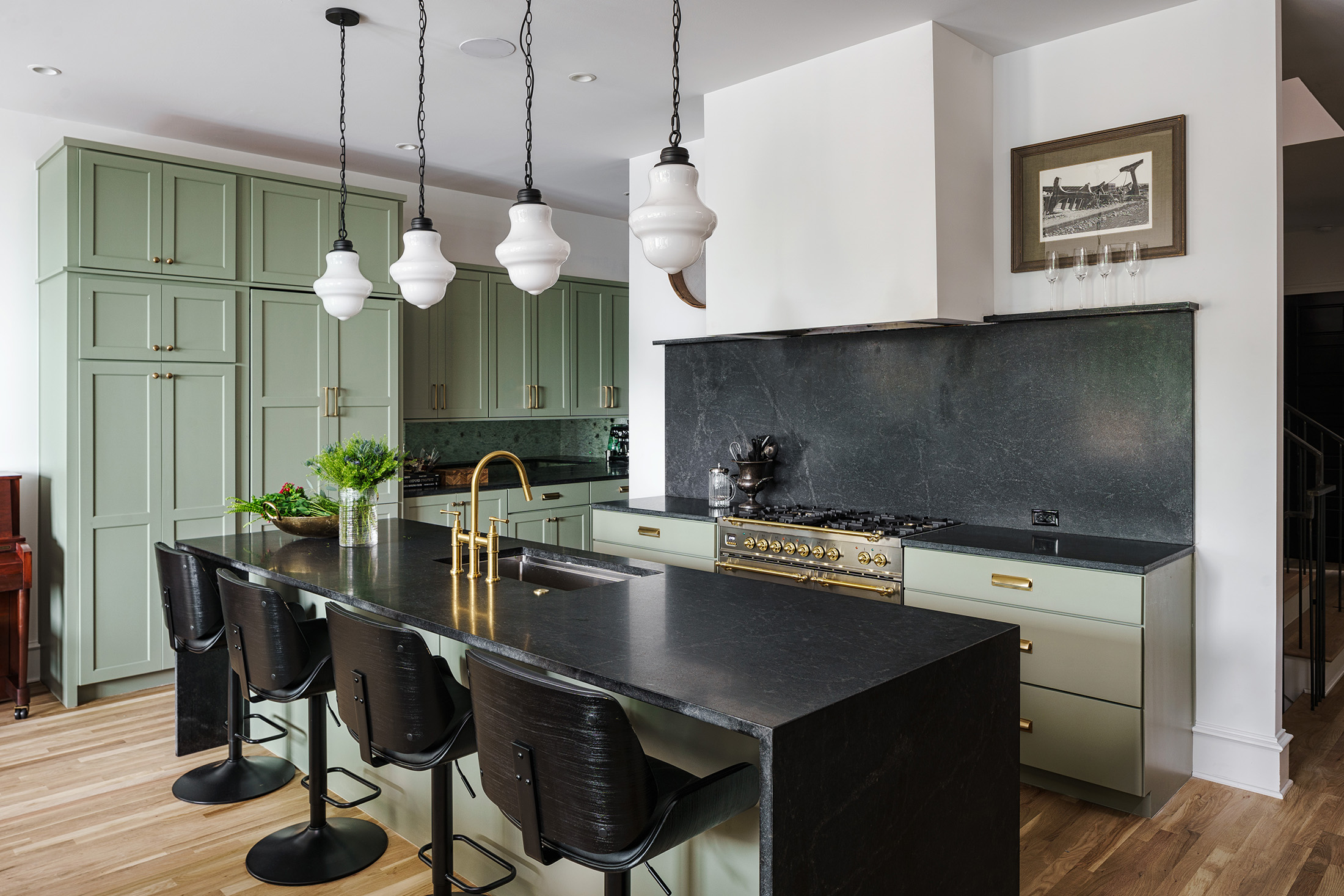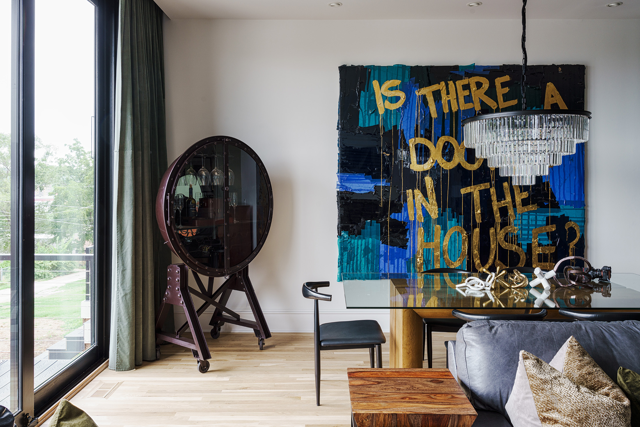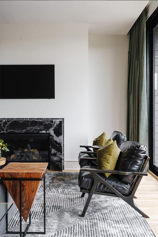 Like all homes in the Westside Collection, the inspiration for the 2-and-a-half story house with finished basement and detached garage came directly from the Westside’s original 1920s and 30s-era homes, which echoed early row home aesthetics. This modern rendition of that classic style features updates like standing-seam aluminum roofing, multiple outdoor decks facing the city skyline, large picture windows throughout, and open-concept layouts throughout the all-new construction. At 4 bedrooms and 3.5 bathrooms, complete with upstairs den that flows out to the rooftop deck, and a finished basement and detached garage, 2107 is a perfect example of how a sophisticated mood and a traditional ambience can co-exist side by side. Numerous brass fixtures, a clear quartz chandelier in the central space, black negresco leathered granite, and cut crystal lighting fixtures root the home in a dark academic tone, but are counterpointed with modern whimsical features to lighten and relax the space for all kinds of activities, entertainment, or quiet relaxation.