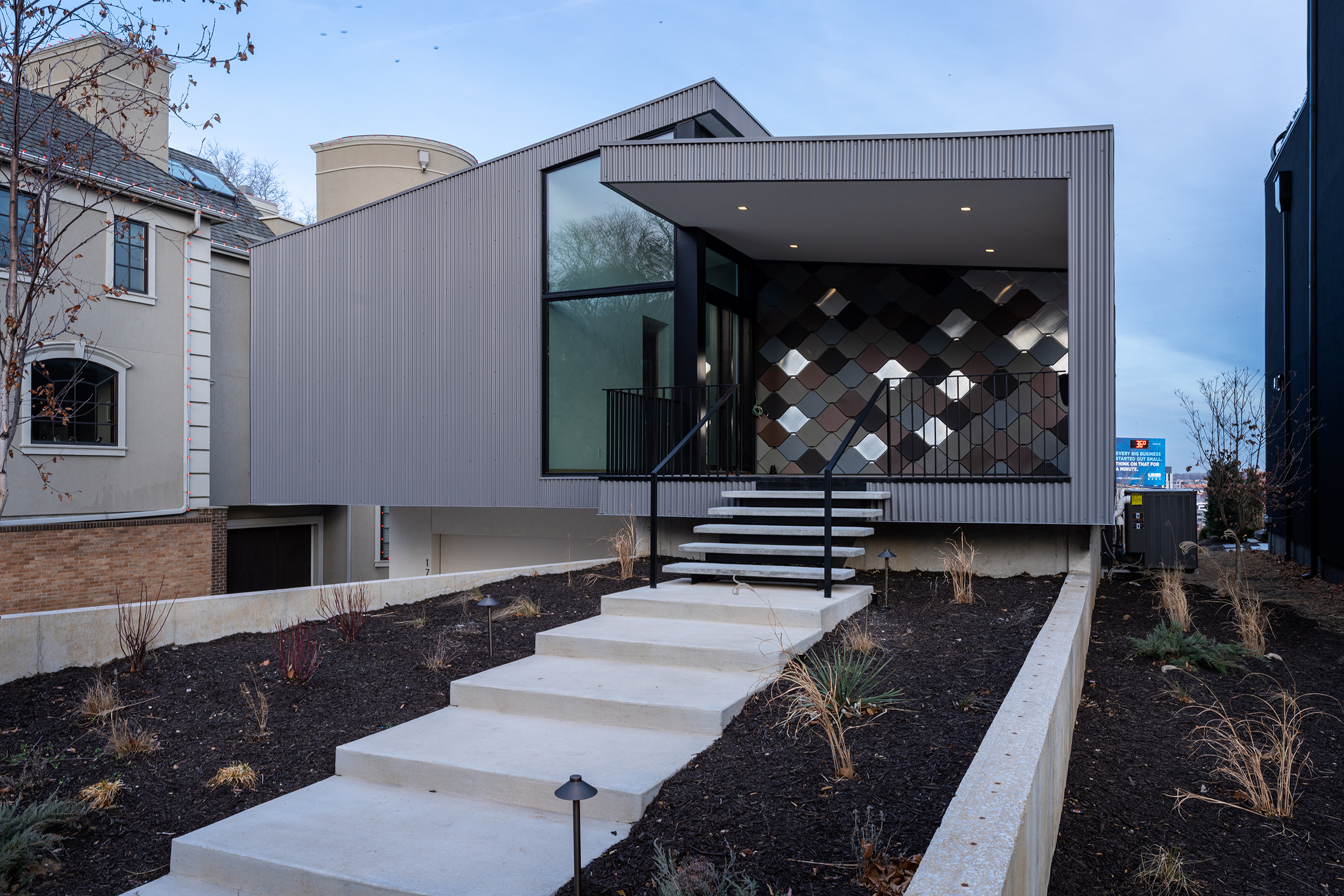 This true modern icon is unlike anything Kansas City has ever seen. Located on one of the most recognizable hillsides streets in the Westside district, 1735 is a fully custom-built home designed by Hufft and executed by Edward Franklin Builders. The bold, modern front facade is an elevated main entry with a hidden garage, accented by imported French artisan-crafted tile and an artistic feature wall along the front porch. The interior is designed around limitless downtown skyline views, with the entire rear wall entirely made of windows. Modern minimalist details continue throughout with extensive built-in custom cabinetry, sweeping ceilings, and an effortless flow from room to room.